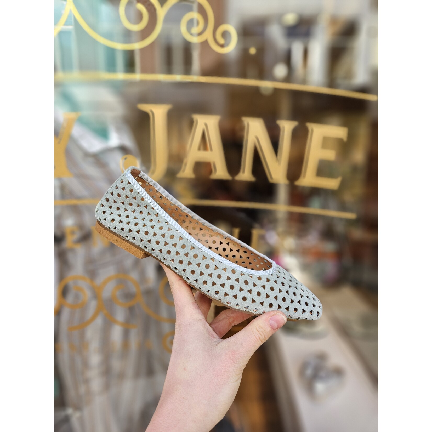Deze lichtblauwe, geperforeerde ballerina's zijn perfect voor een casual dag of een speciale gelegenheid.